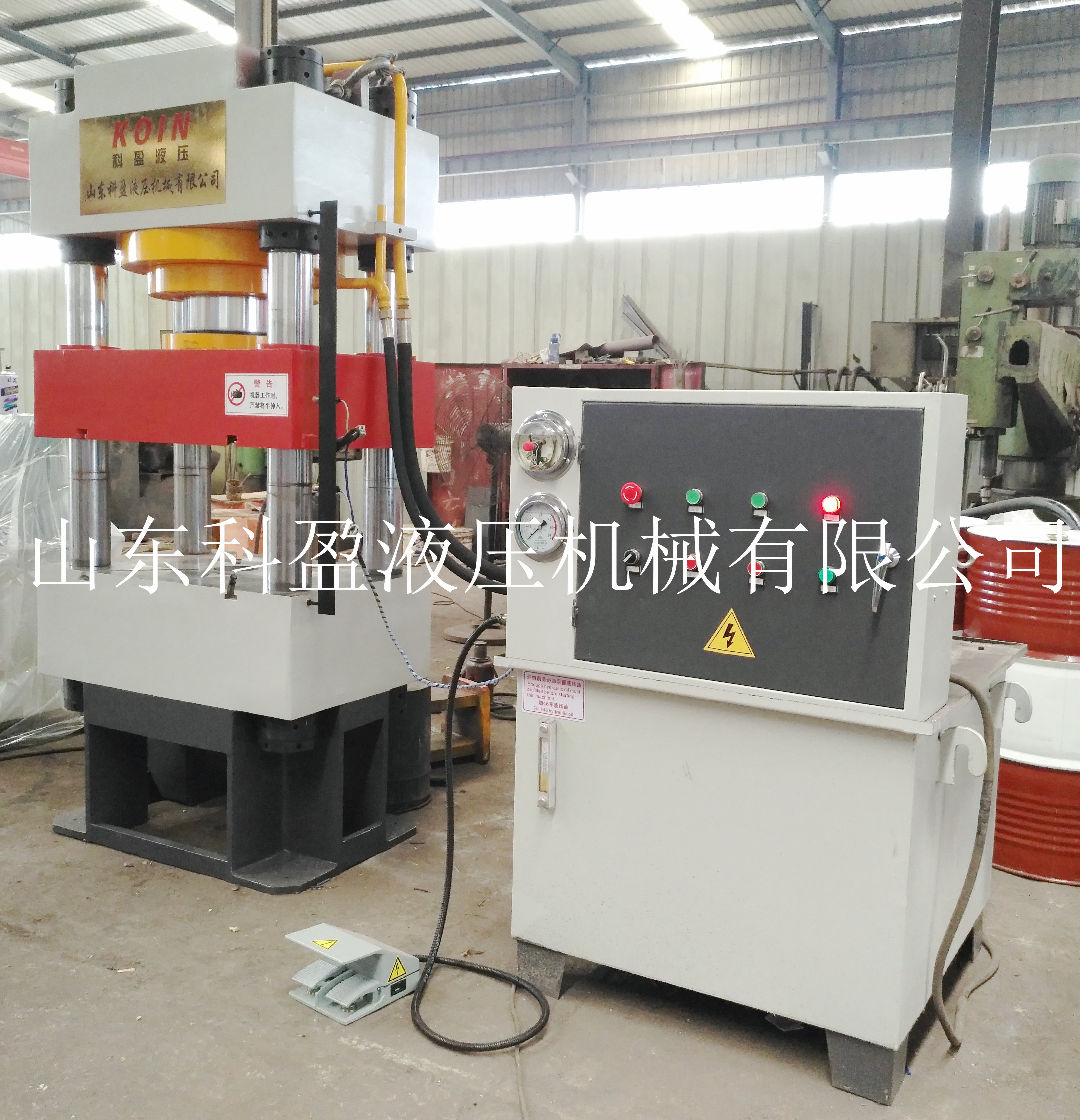 電器箱上設有(yǒu)液壓機(jī)各部分動作的(de)操作按鈕、功能轉換開關,各個電機(jī)的(de)起停按鈕及各部分的(de)報警、監視(shì)指示,急停開關等。