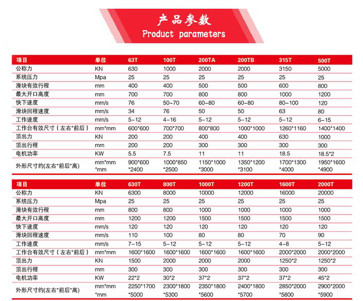 液壓動力系統及電器系統等部件組成。它的(de)顯著特點是工作空間寬敞,整機(jī)結構簡單,工藝性較好。機(jī)身由上橫梁,活動橫梁,工作台和(hé)四根立柱組成,工作缸安裝在上橫梁內(nèi),活動橫梁與工作缸的(de)活塞聯接成一(yī)整體,以立柱為(wèi)導向做(zuò)上下運動,并傳遞工作缸的(de)內(nèi)産生力量,對制件進行(xíng)壓力加工。